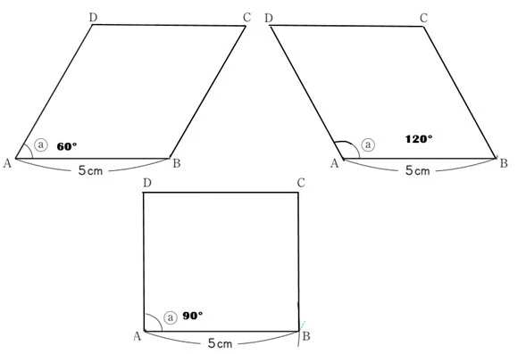 - Ketika ukuran sudut diubah ke 90°, jajar genjang menjadi persegi panjang dan belah ketupat menjadi bujur sangkar.